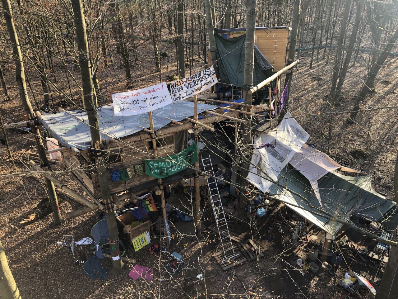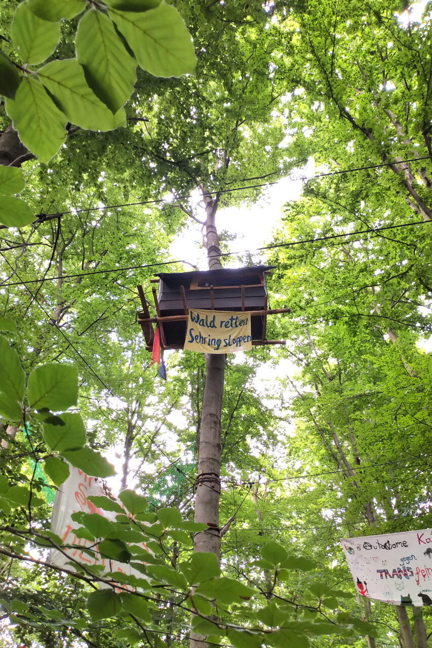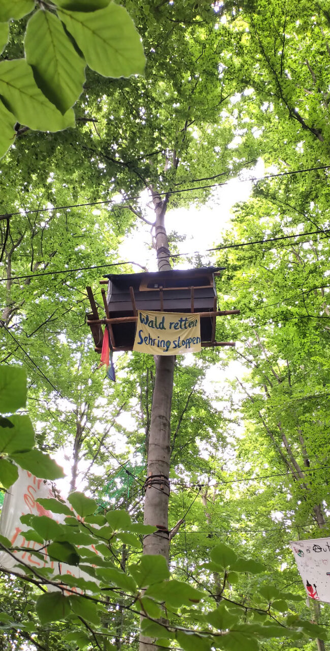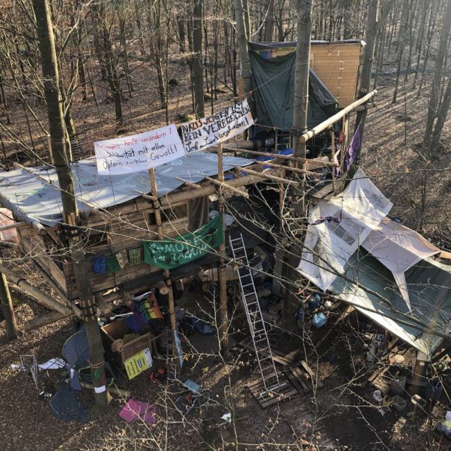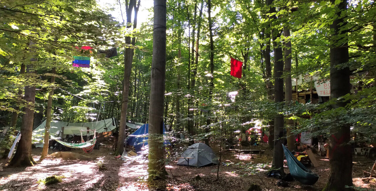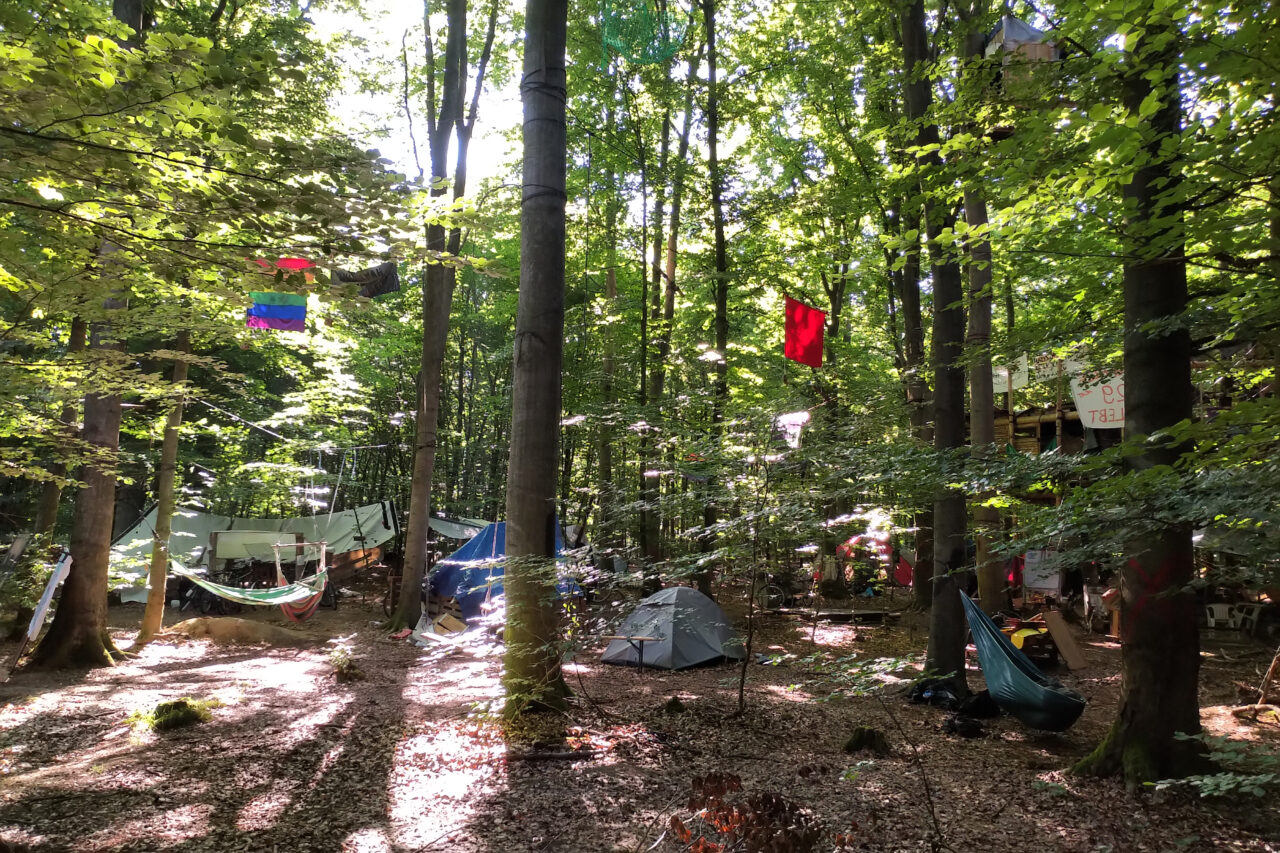 11.09.2025 In der Rodungssaison 2025 / 2026 soll ein weiterer Abschnitt des streng geschützten Bannwalds für den Kies-Abbau gerodet werden. Die Waldbesetzung bereitet sich auf eine bevorstehende Räumung vor.