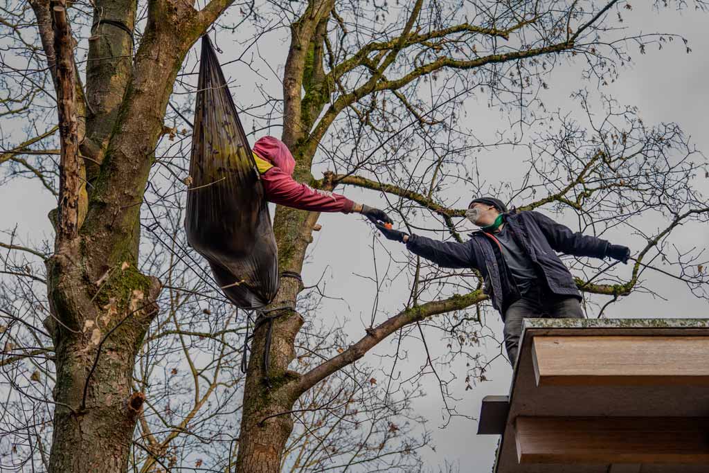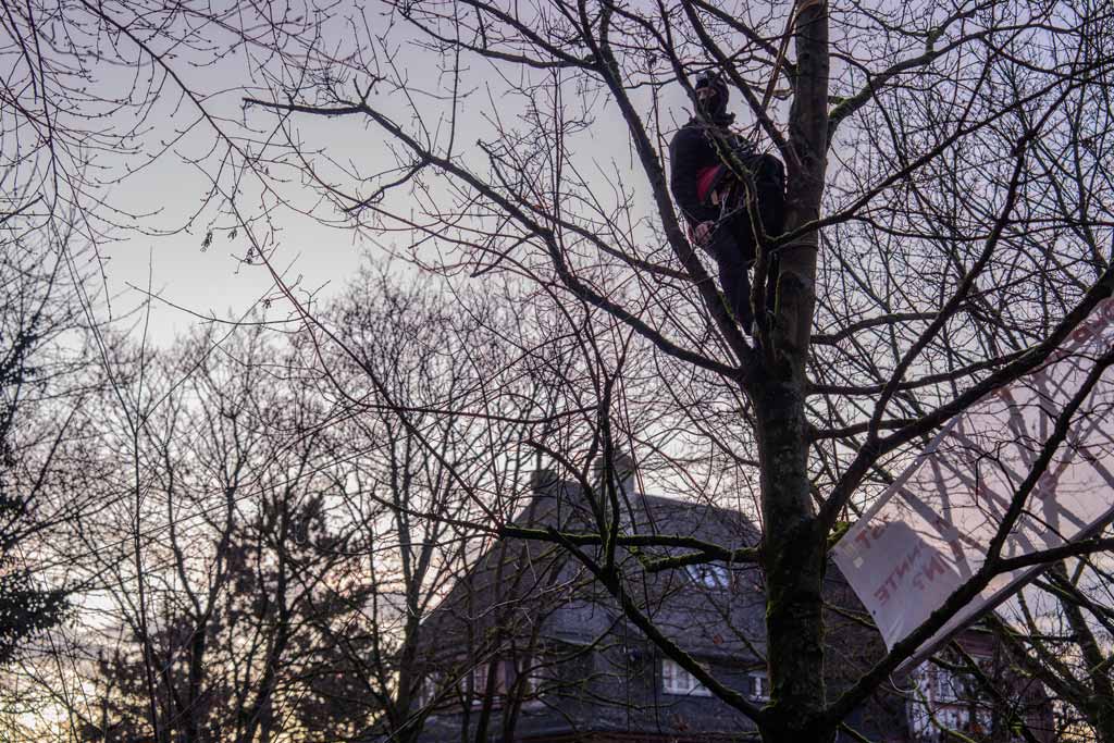 In den frĂŒhen Morgenstunden des 18. Dezembers herrscht reges Treiben am Osthang. Hastig werden Barrikaden gebaut, Kletterseile in die BĂ€ume gezogen, HĂ€ngematten installiert. Eine Gruppe von Aktivist*innen macht sich bereit fĂŒr eine Besetzung. Kurz zuvor hatte sich herum gesprochen, dass die FĂ€llung der ersten BĂ€ume unmittelbar bevorsteht.