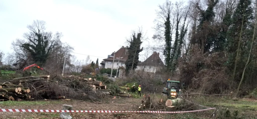 Am 2. Dezember 2025 begannen die Rodungsarbeiten im Bergschlösslpark und im benachbarten Ziegeleipark unter massivem Polizeischutz. Laut Medienberichten sind weit über 200 Bäume betroffen — darunter 90 Exemplare mit Stammdurchmessern über 60 cm, also ausgewachsene, ökologisch wertvolle Bäume. Gegen die Abholzungen protestierten Aktivist*innen bereits seit Tagen: Einige besetzten Bäume, andere schliefen in Hängematten, versuchten mit Kunstaktionen und zivilem Ungehorsam die Fällungen zu verhindern. Doch das Polizeiaufgebot sicherte den Einsatz— für viele ein Symbol dafür, wie weit politischer Wille und Betonlobby gehen, um Grünräume dem Autoverkehr zu opfern.