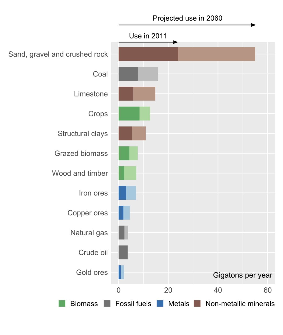 Der ĂŒberproportionale Anstieg bei nichtmetallischen Mineralien wie Sand verdeutlicht einen Trend zu einer rasch steigenden Nachfrage, die sich in den kommenden Jahrzehnten vermutlich verdoppeln wird (Torres et al., 2021: 640).