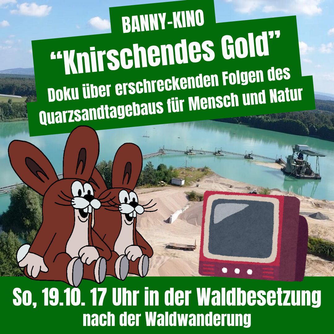 Der Film wird im Anschluss an den Waldspaziergang in der Waldbesetzung Banny bleibt gezeigt (je nach Temperatur entweder im Freien oder in einem beheizten Raum). Menschen von der Bürgerinitiative Schafheim werden ebenfalls zu Gast sein und freuen sich darauf, nach dem Film mit euch ins Gespräch zu kommen.