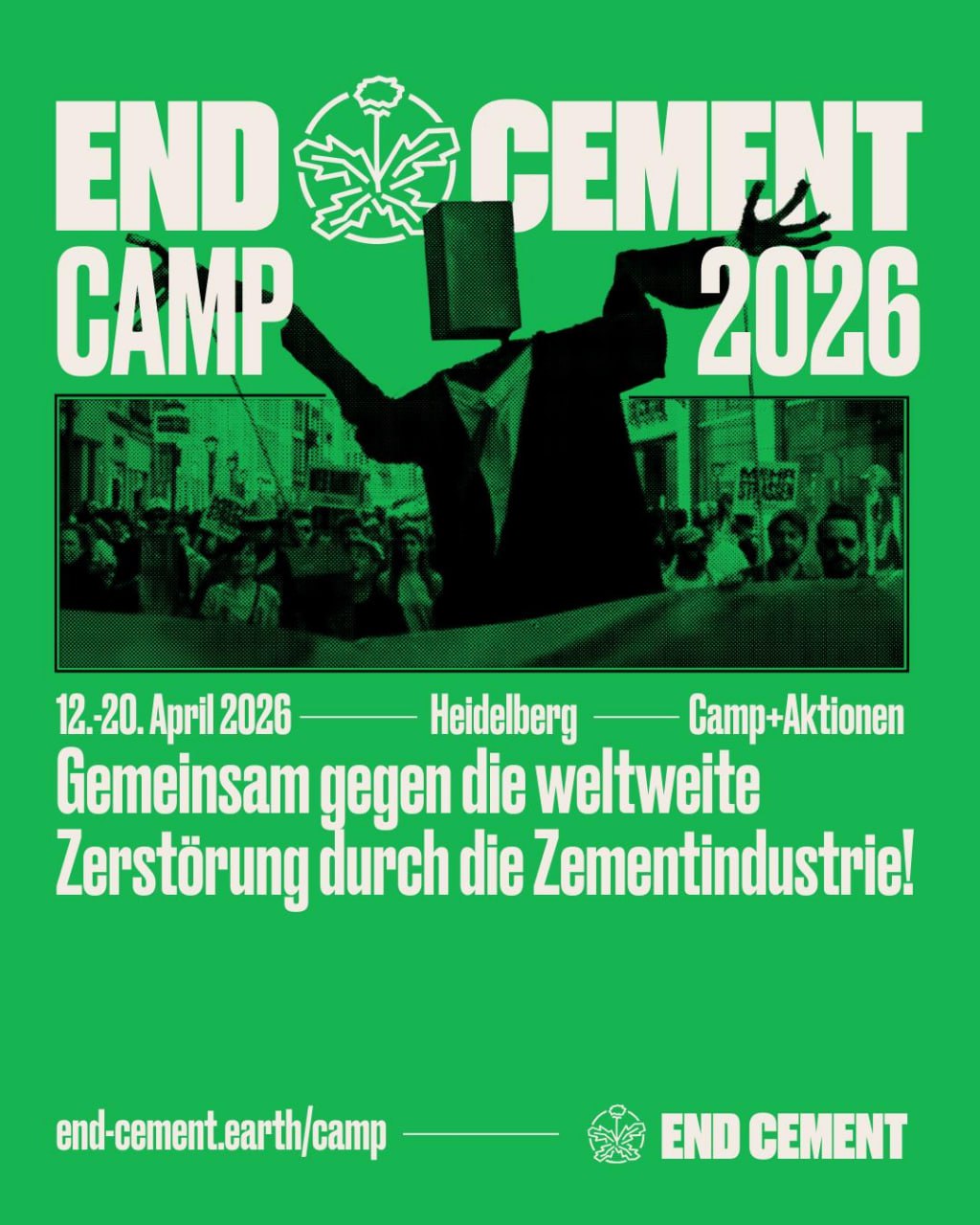 Vom 12. – 20. April 2026 ist es wieder so weit: Gemeinsam leisten wir gegen Deutschlands Klimakiller Nr.1, Heidelberg Materials, Widerstand. Während der Zementriese versucht sich auf dem „Heidelberger Frühling“ wieder als Wohltäter darzustellen sorgen wir mit einem dicken Protestcamp direkt vor der Hauptzentrale und parallelen ungehorsamen Aktionen für ordentlich Aufmerksamkeit!